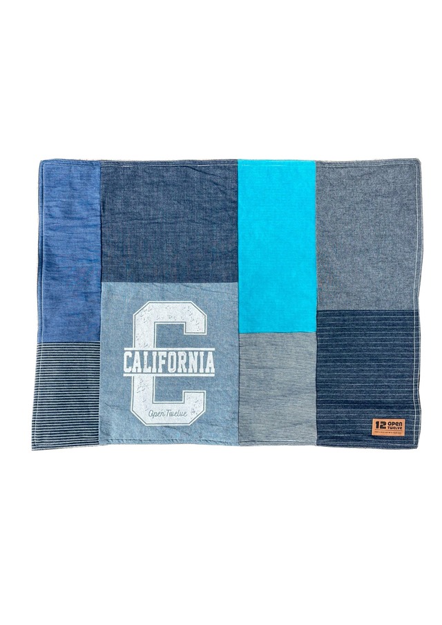 デニム、シャンブレー、ヒッコリー、コーデュロイを使用したリメイク風パッチワーク【カフェマット】になります♪ 裏がボア素材になっているので程よいフワフワ感もあり、ワンポイントのカレッジプリント入りで可愛さ抜群です! カフェやアウトドアなどお出かけの時にサッと引ける便利アイテムです! ( open12 , open 12 , open twelve , OPEN12 , OPENTWELVE , オープントゥエルブ )