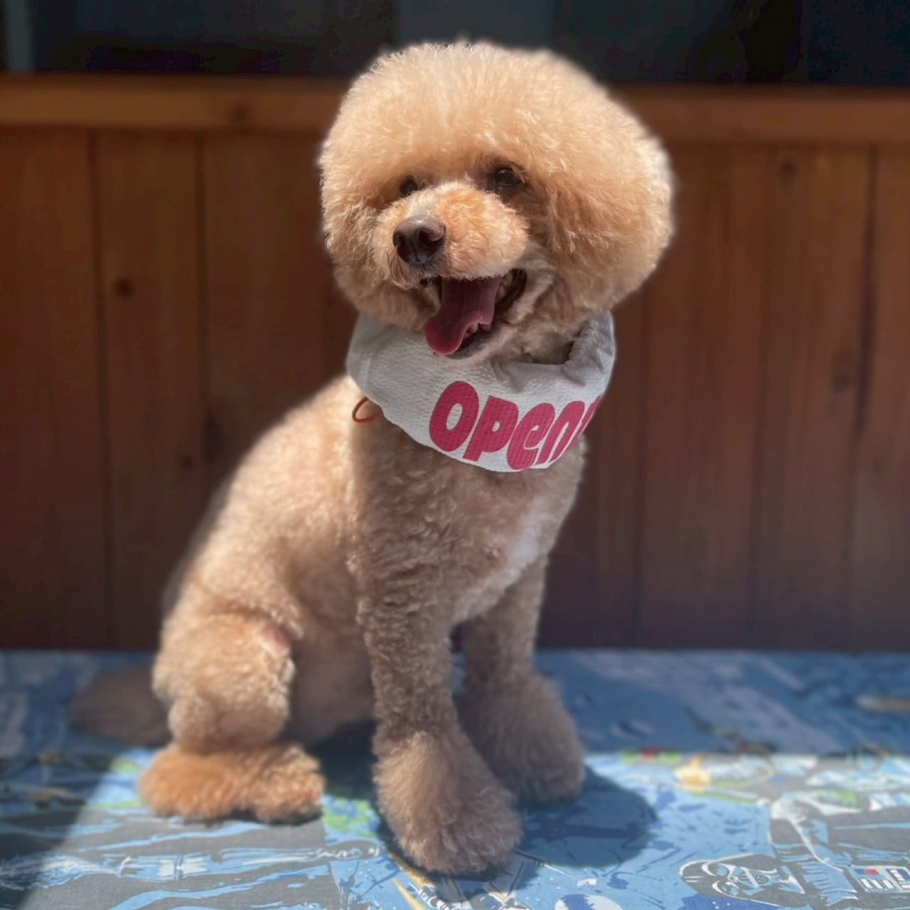 モデル犬:トイプードル7キロ、Mサイズ着用