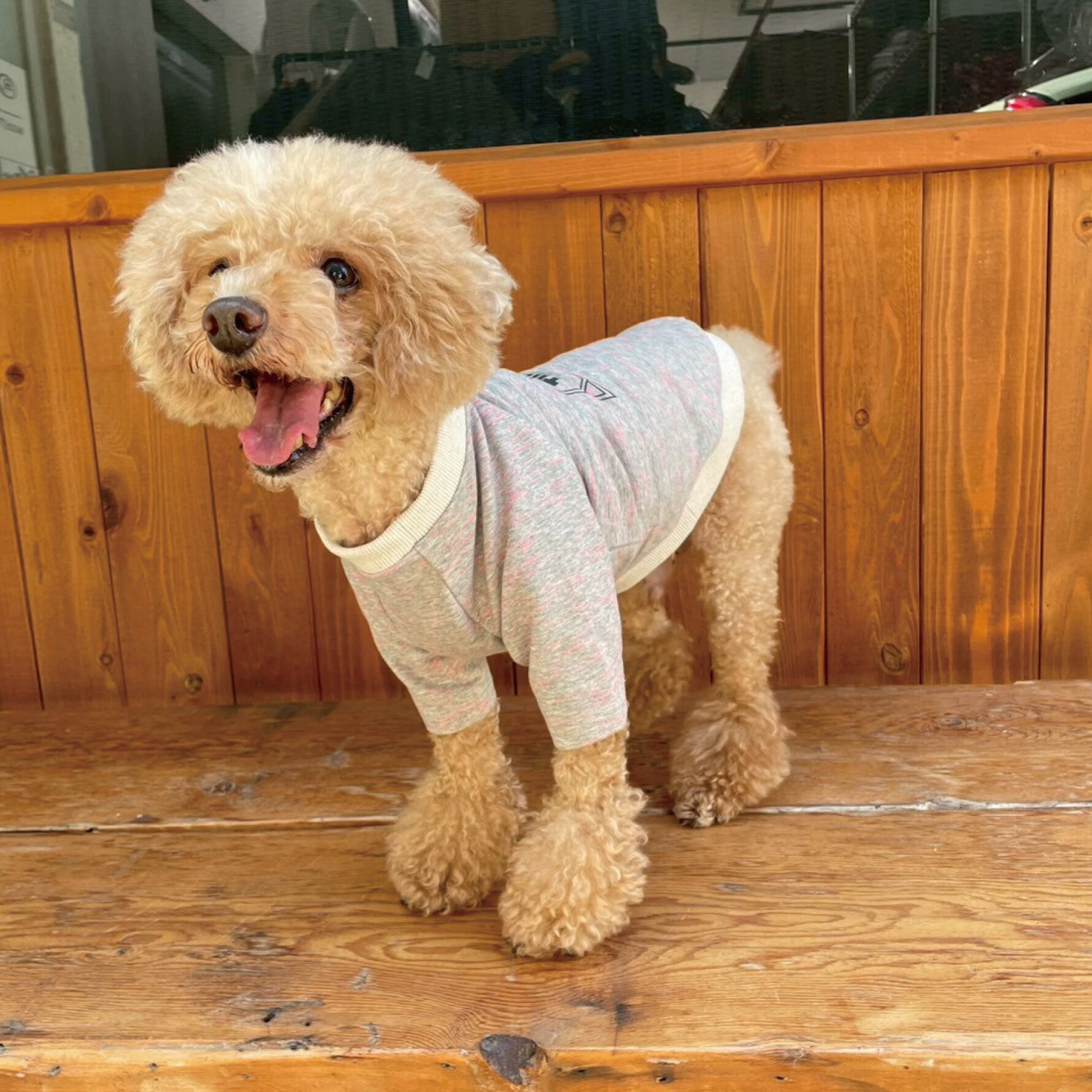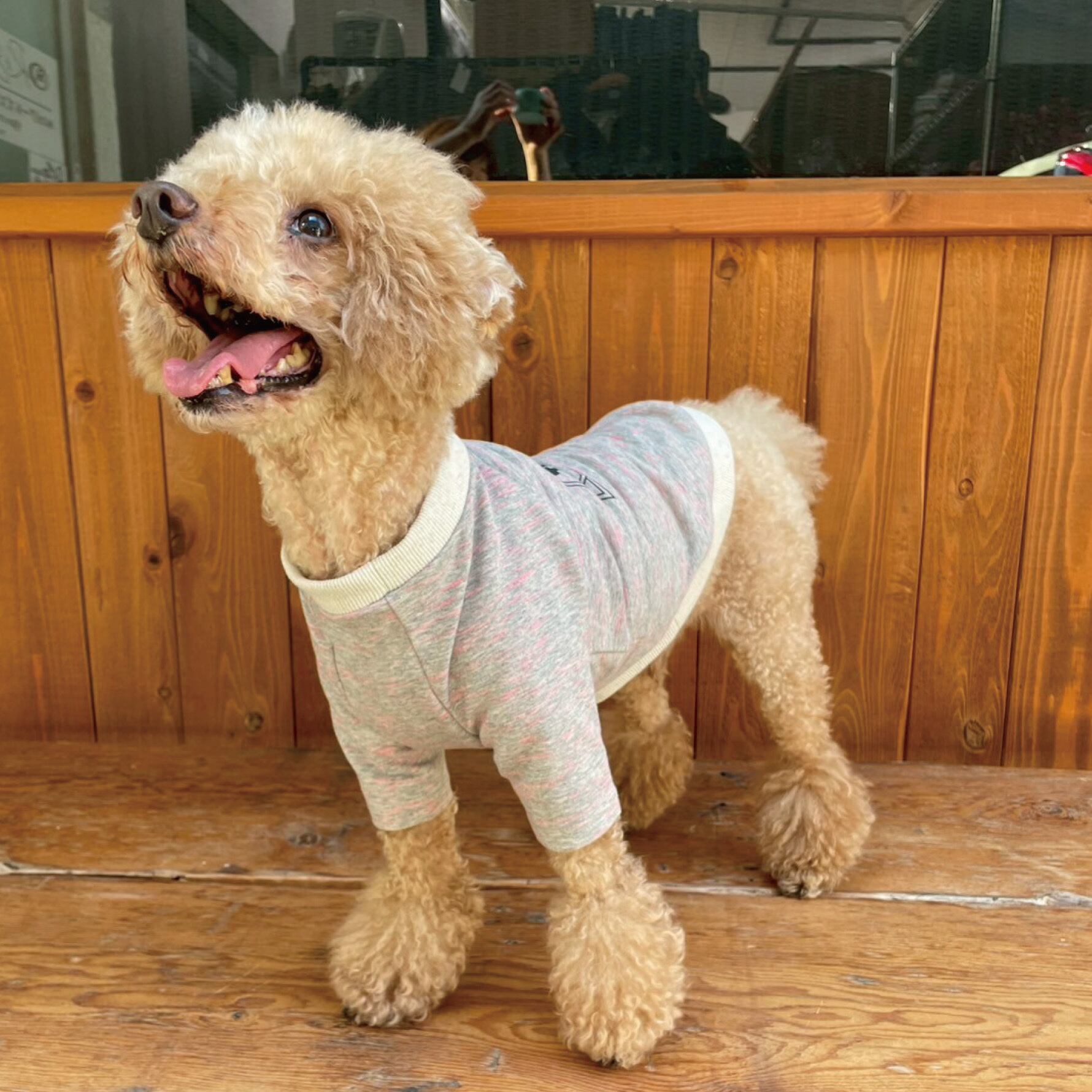 モデル犬:トイプードル7キロ、Lサイズ着用