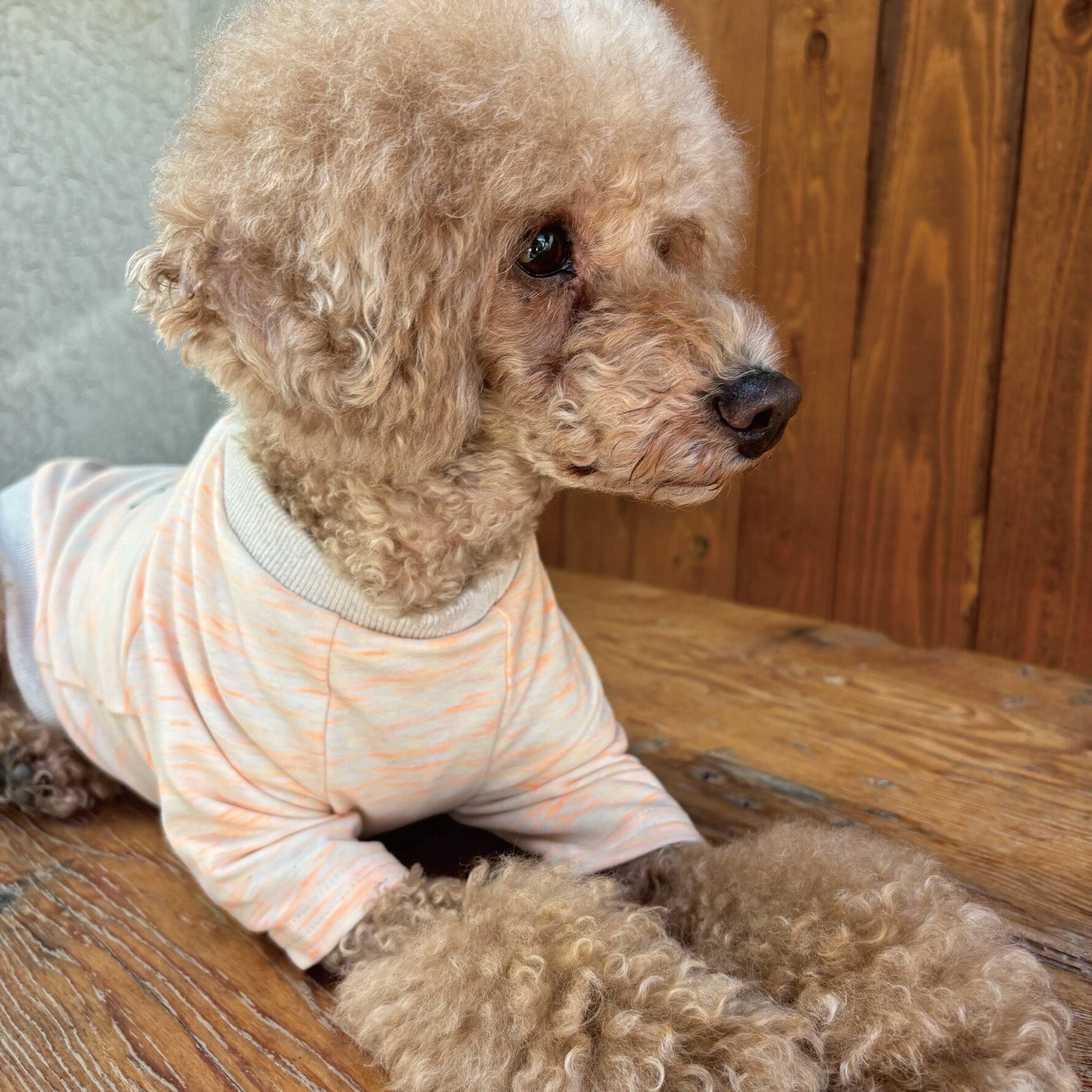 モデル犬:トイプードル7キロ、Lサイズ着用