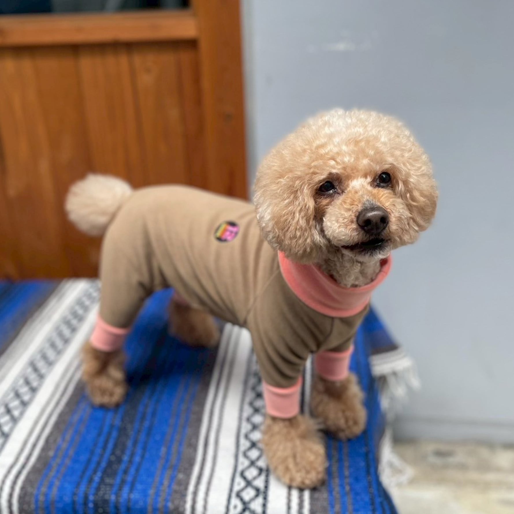 モデル犬:トイプードル7キロ、Lサイズ着用