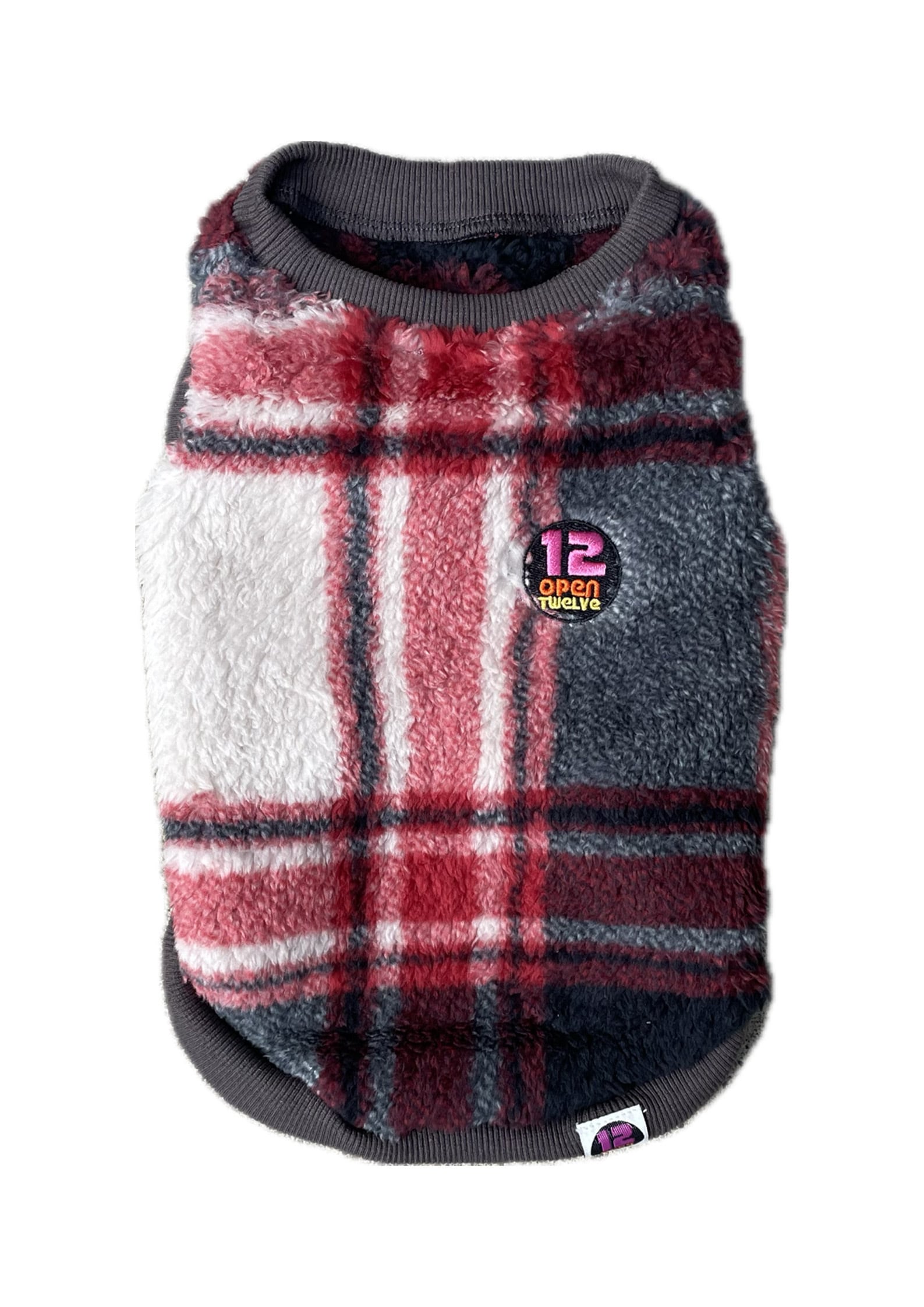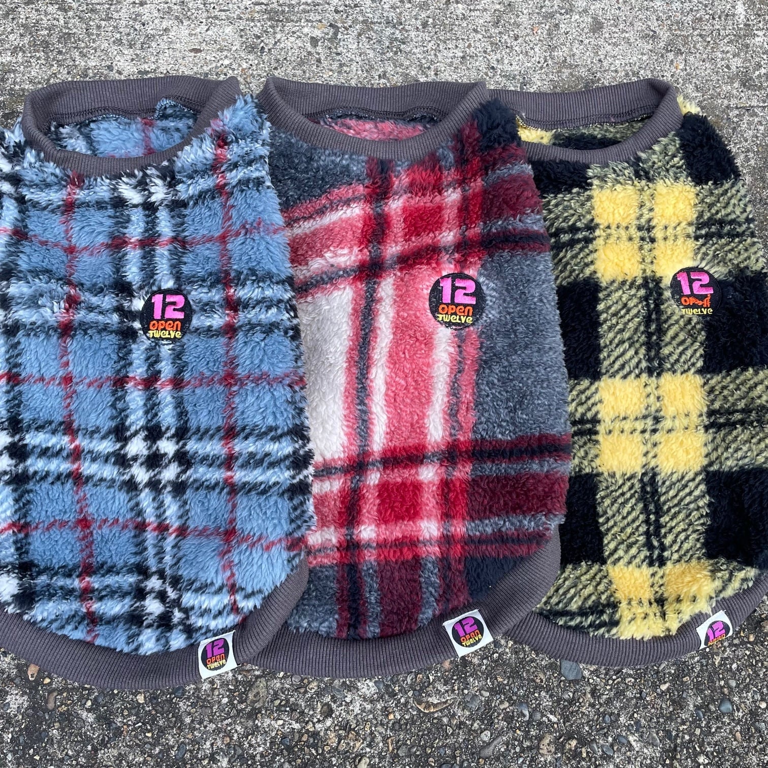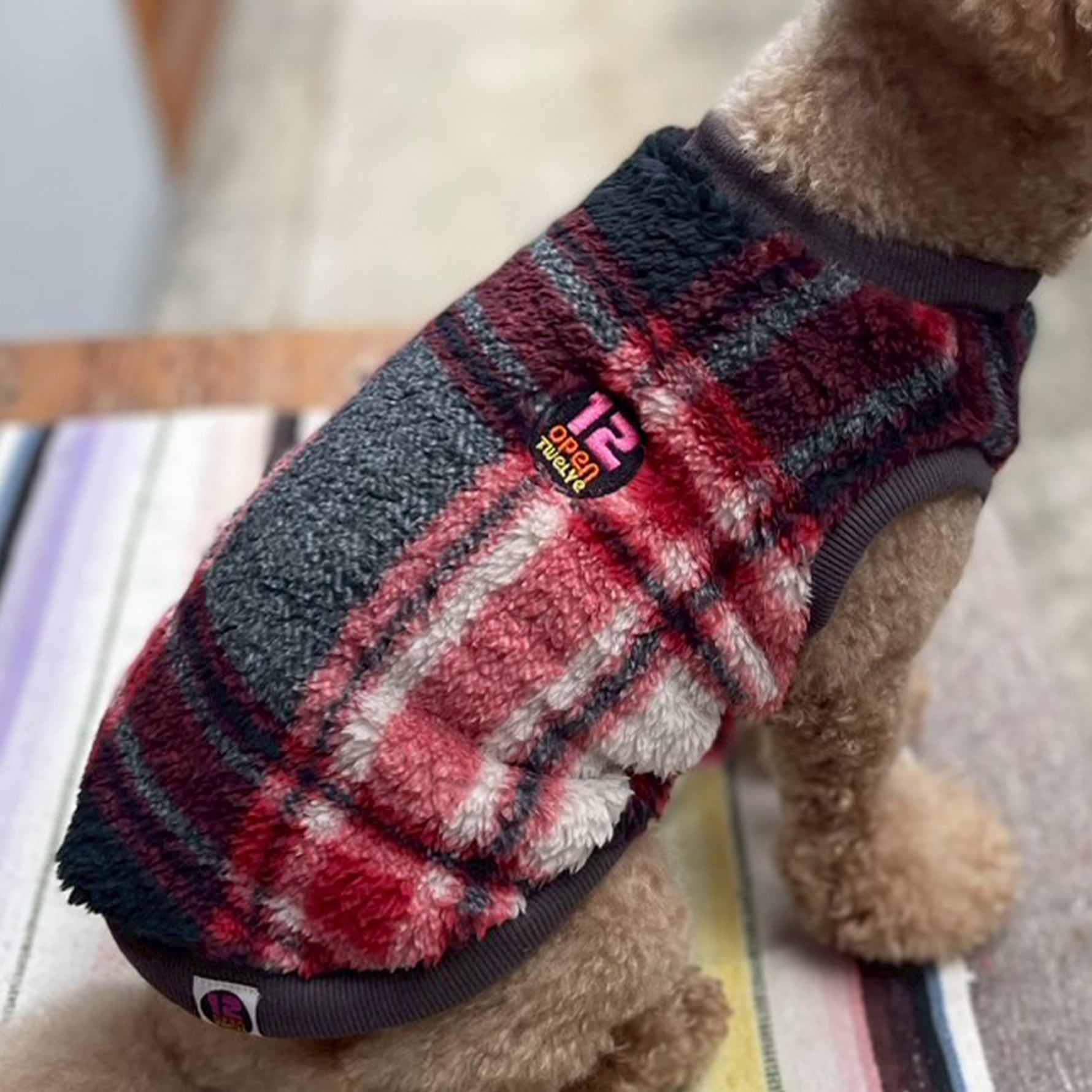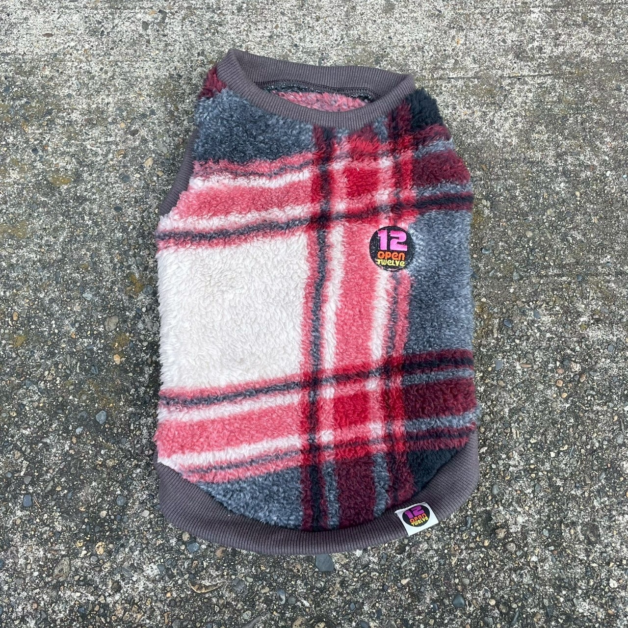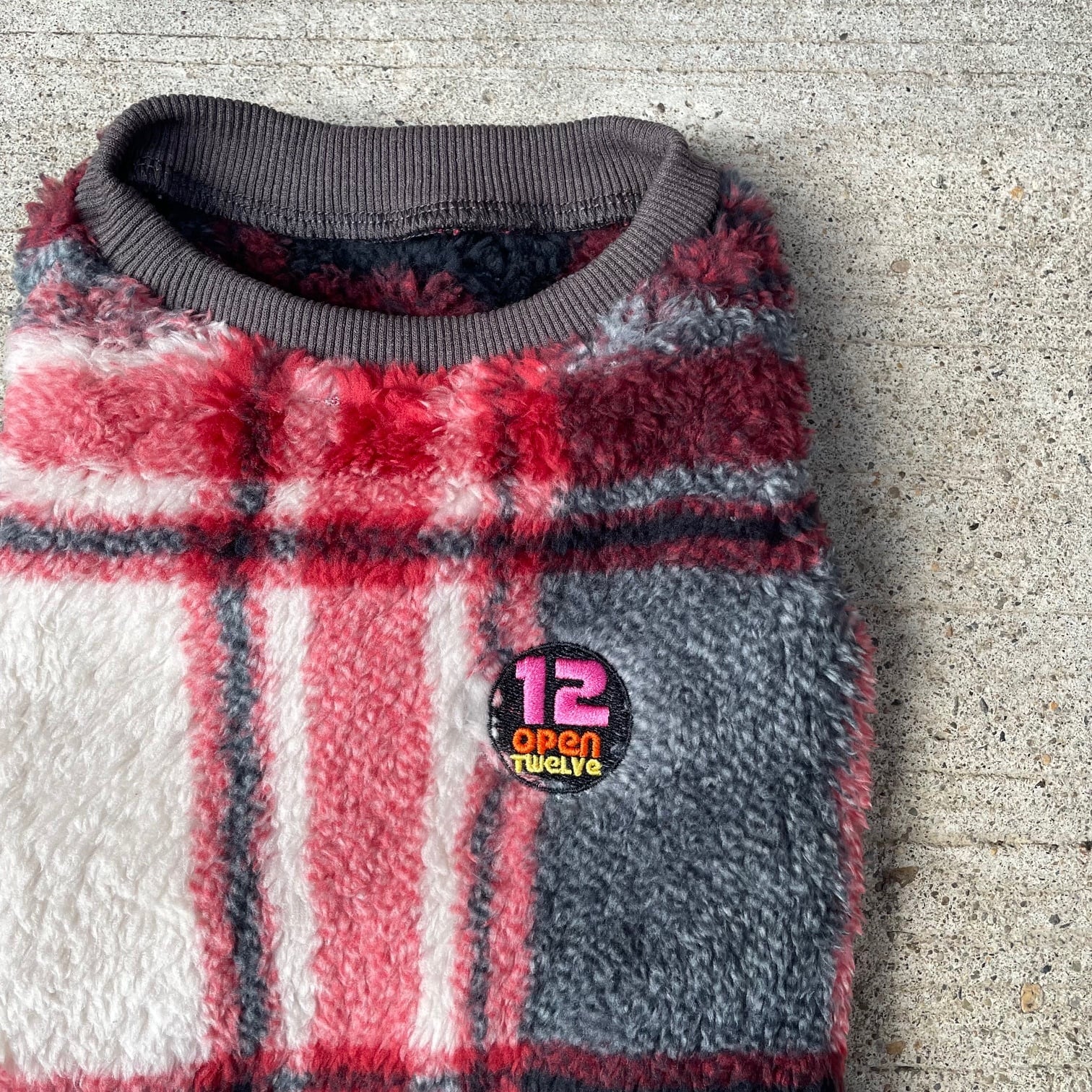 《NEW》 ボアフリースチェック 12ワンポイント刺繍 (レッド)