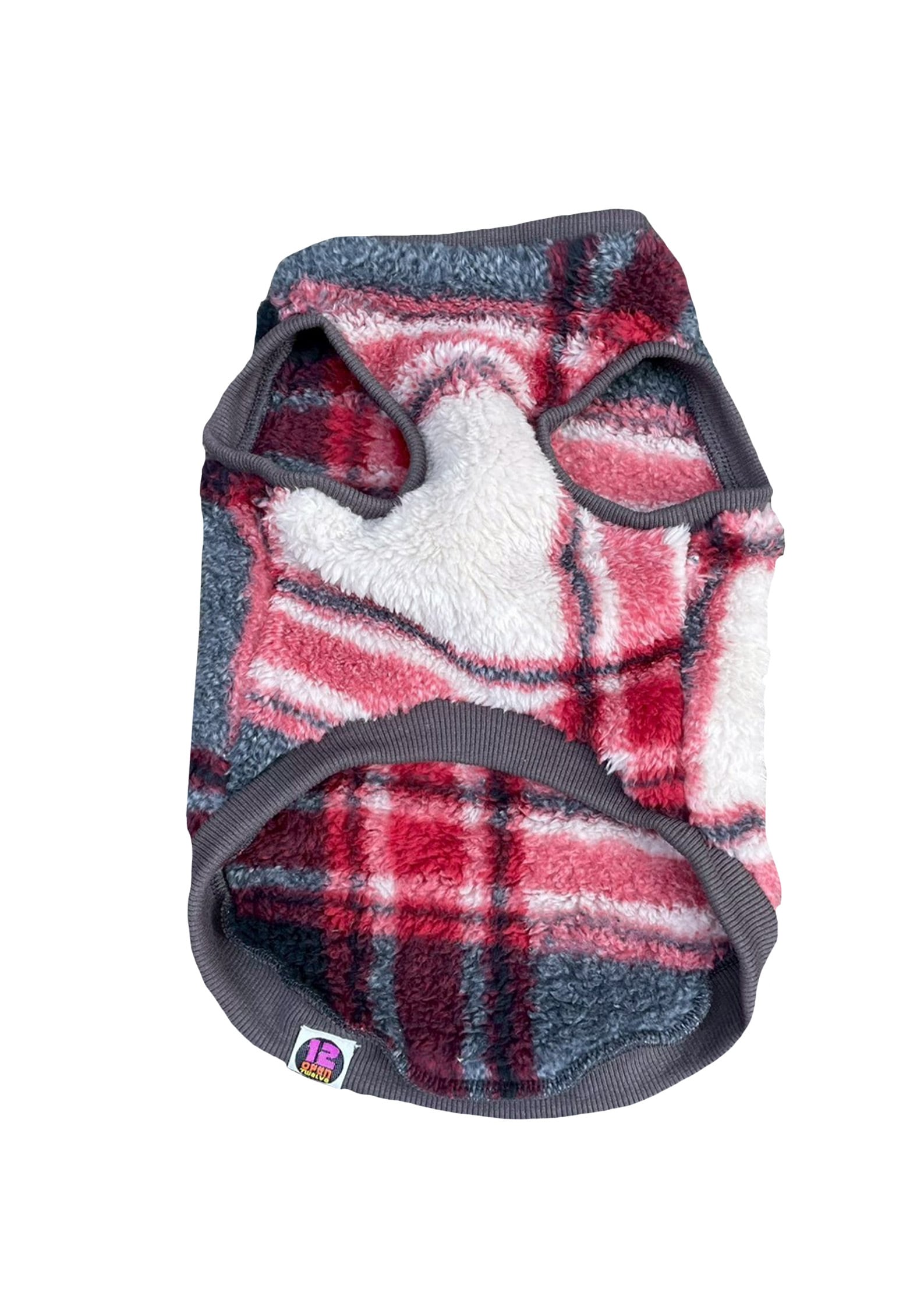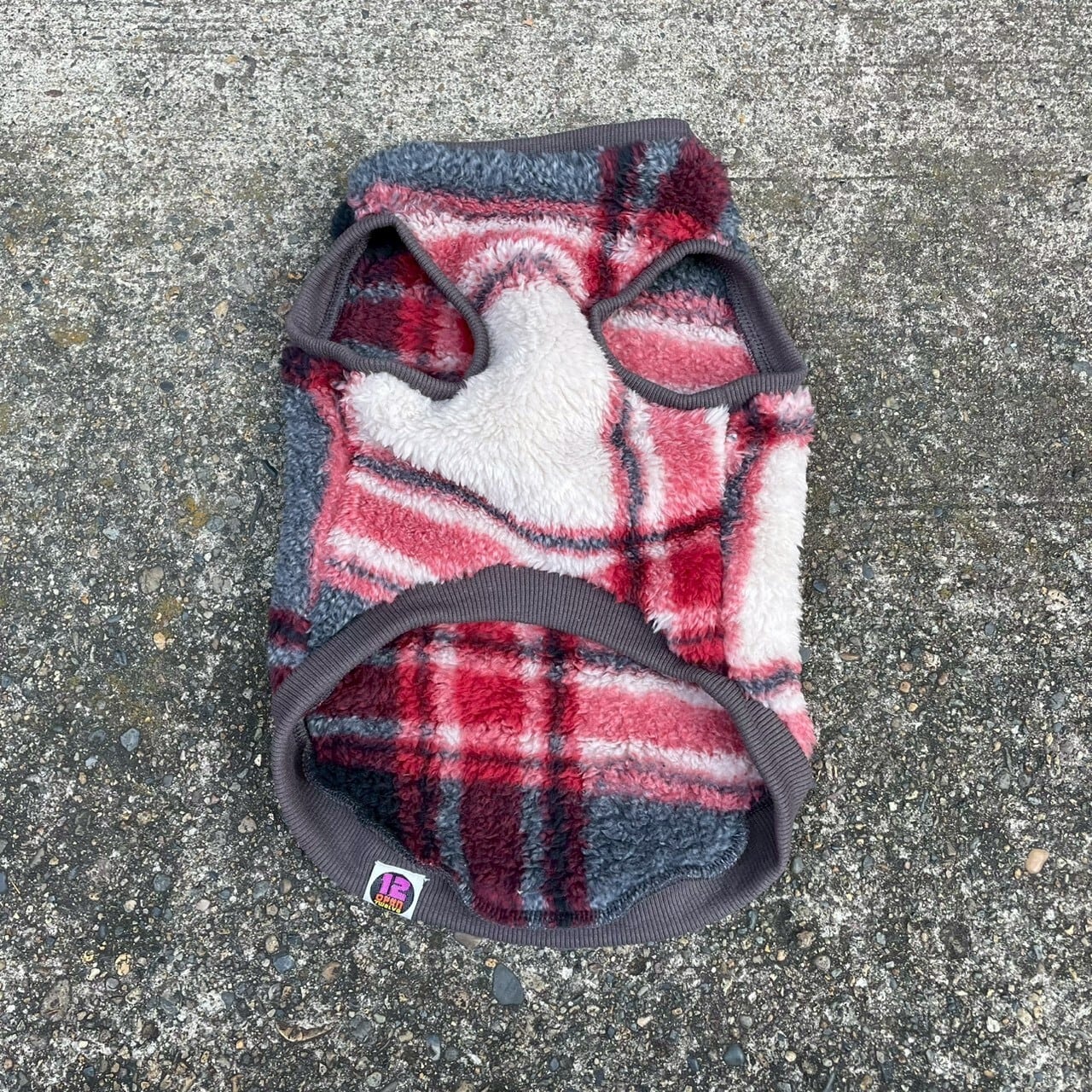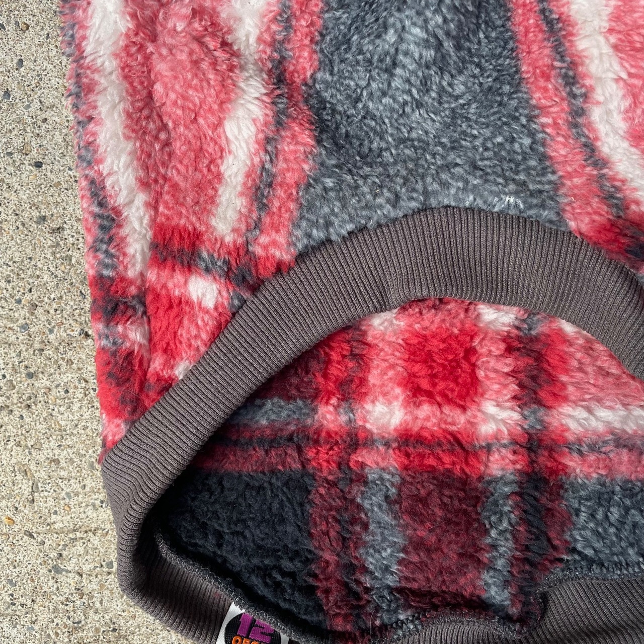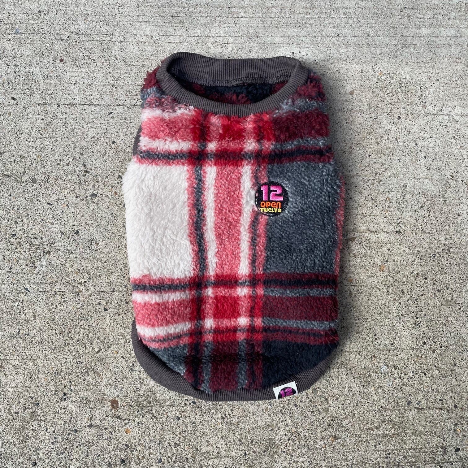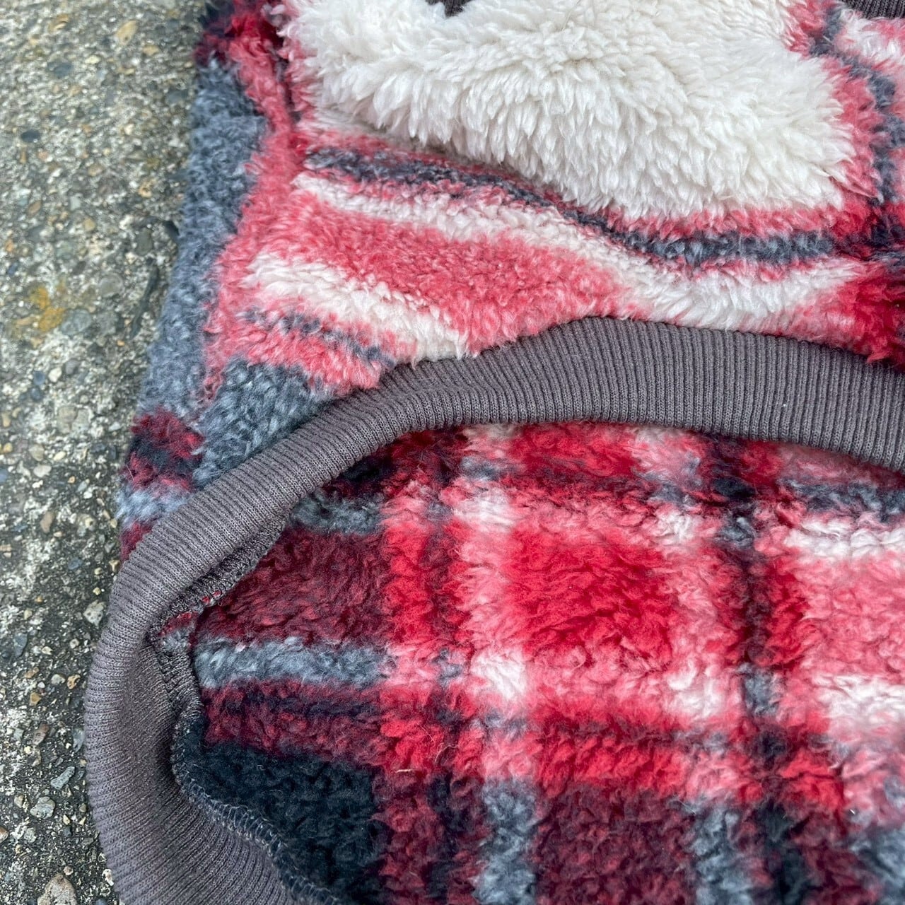 《NEW》 ボアフリースチェック 12ワンポイント刺繍 (レッド)