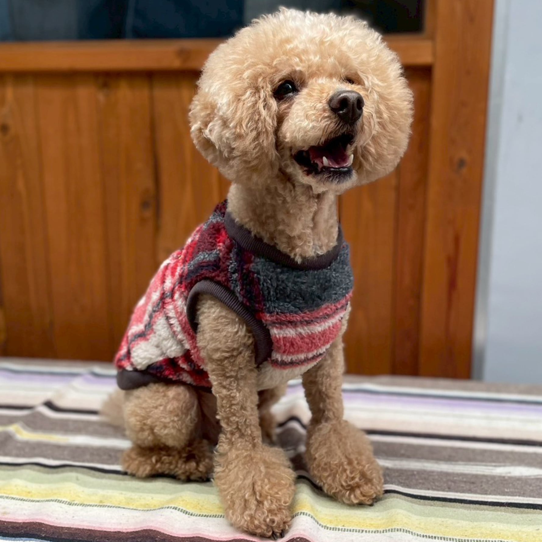 モデル犬:トイプードル7キロ、Lサイズ着用