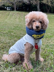 モデル犬:トイプードル7キロ、Mサイズ着用