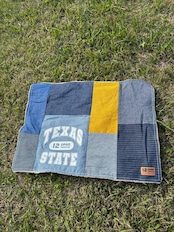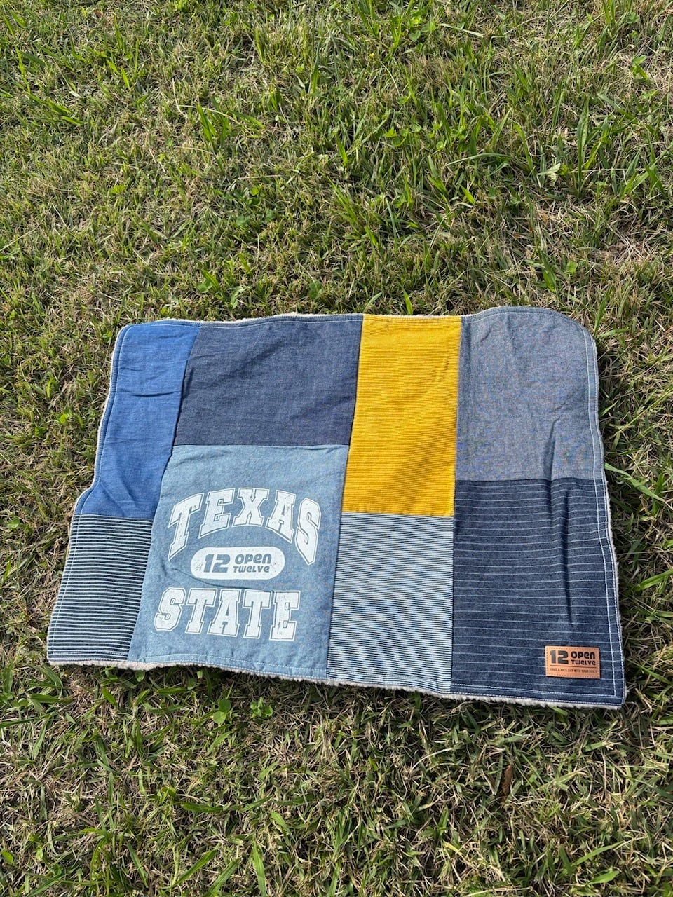デニム、シャンブレー、ヒッコリー、コーデュロイを使用したリメイク風パッチワーク【カフェマット】になります♪