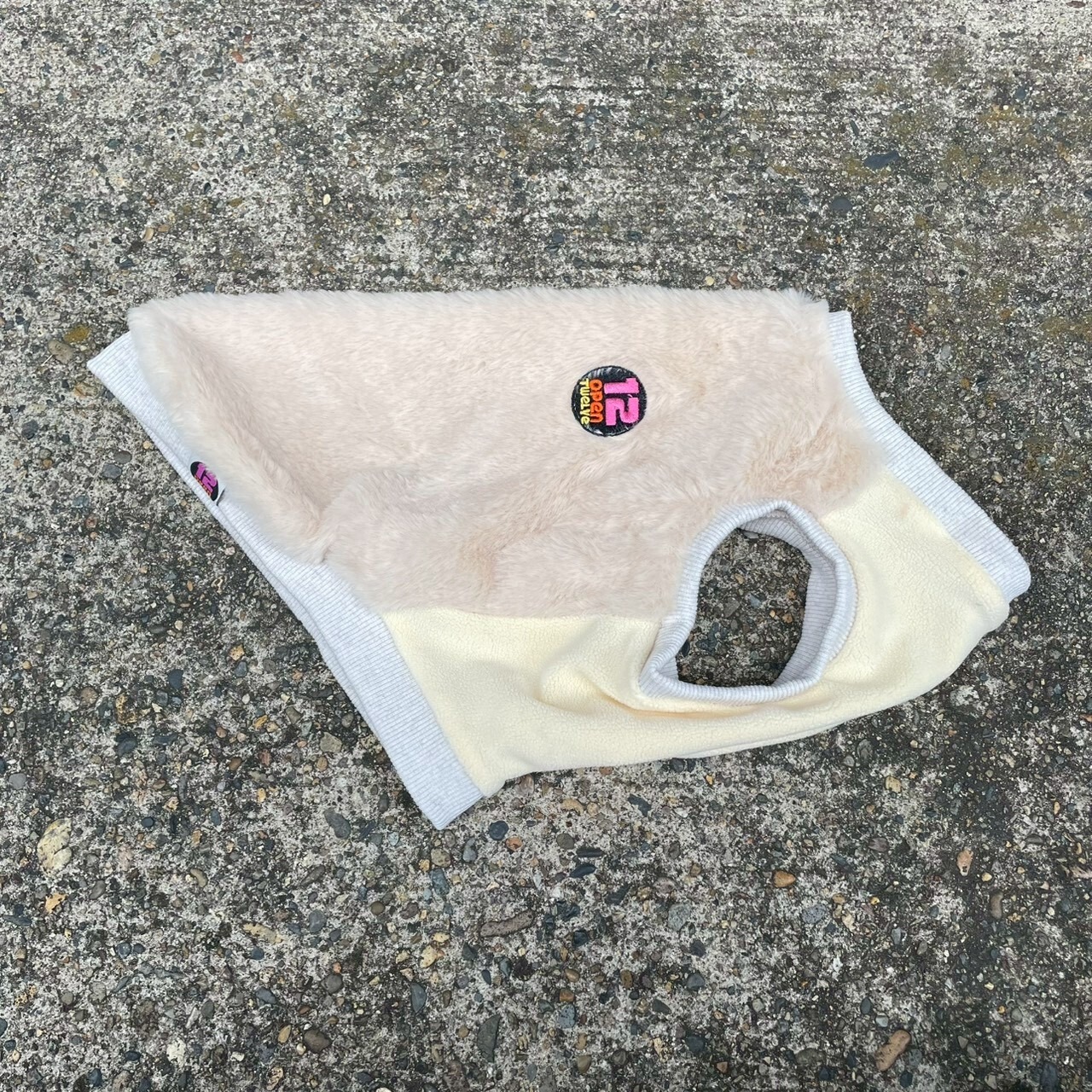 《NEW》ファー×フリース ワンポイント刺繍 (アイボリー )