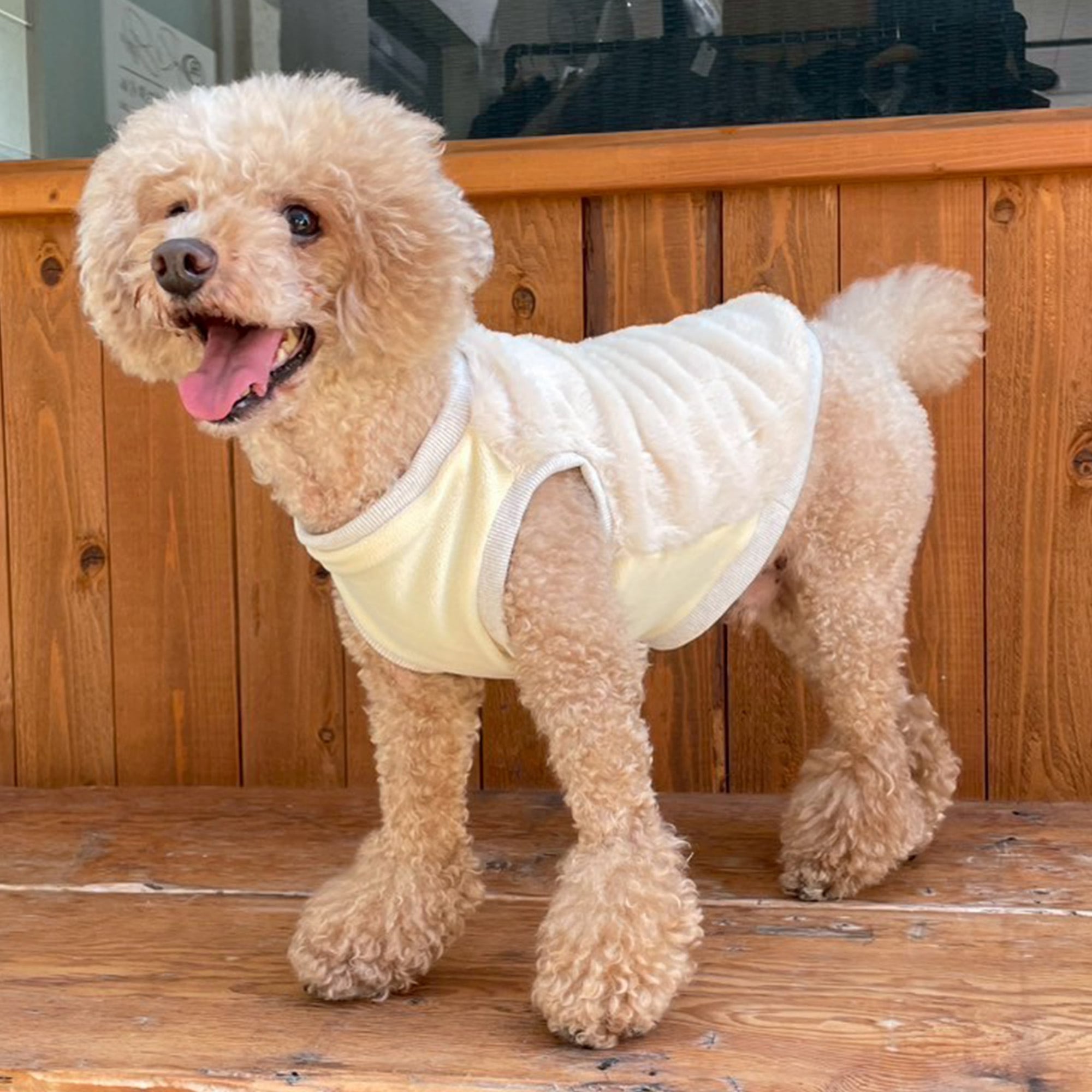 モデル犬:トイプードル7キロ、Lサイズ着用