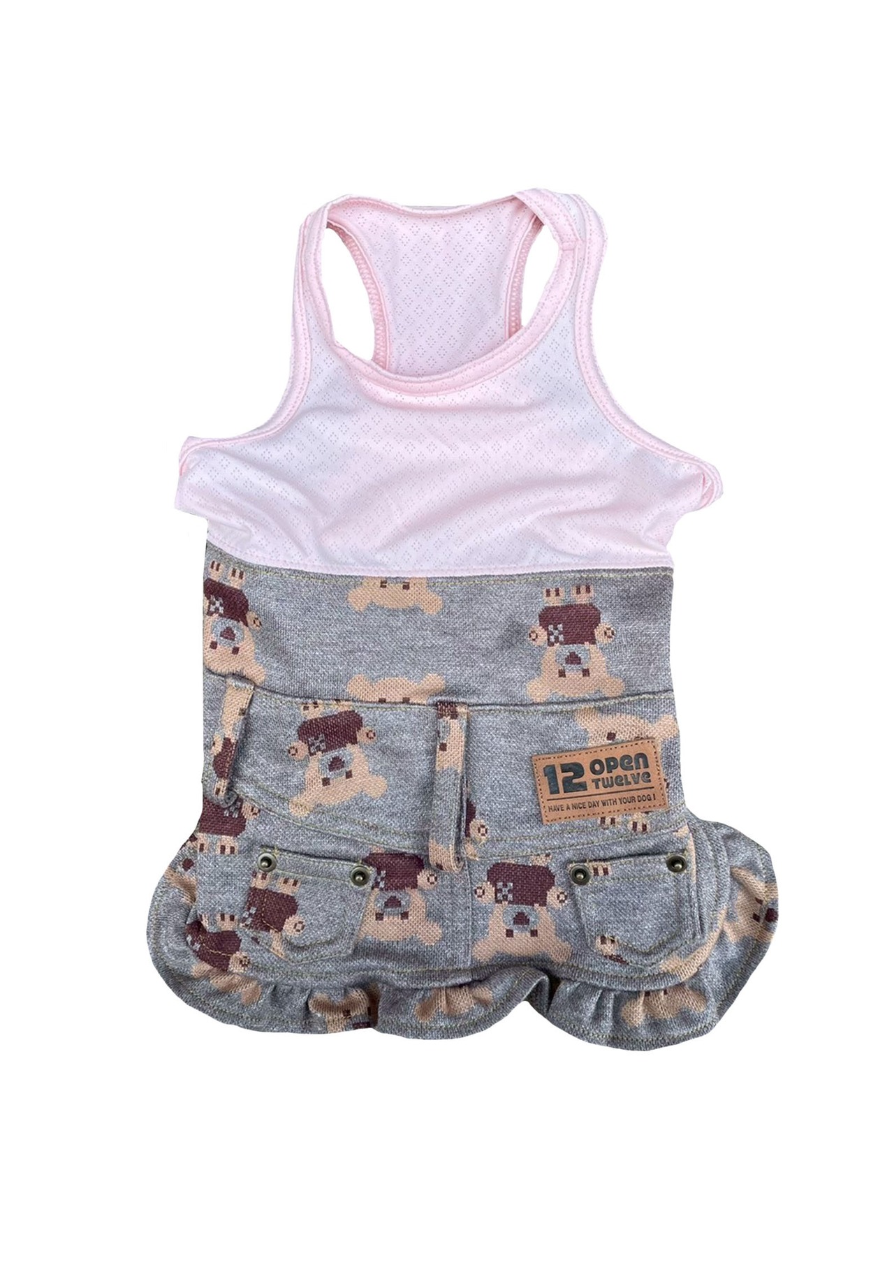 《NEW》クマニットジャガード×メッシュ レイヤースカート (グレー)