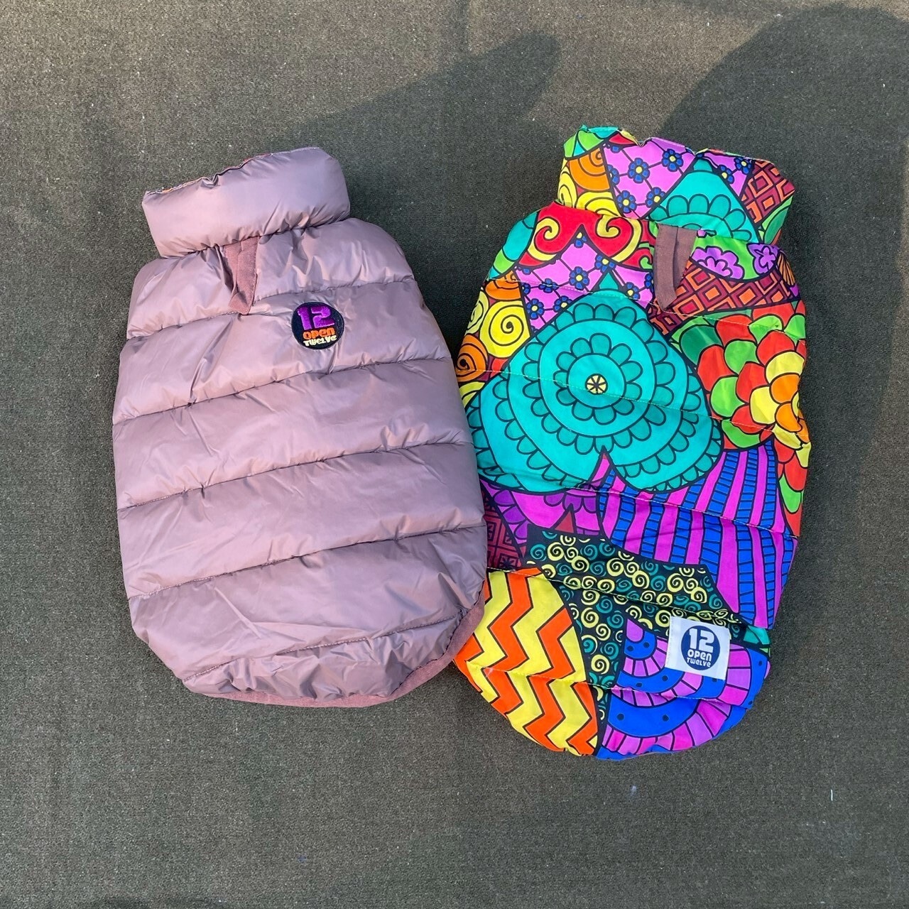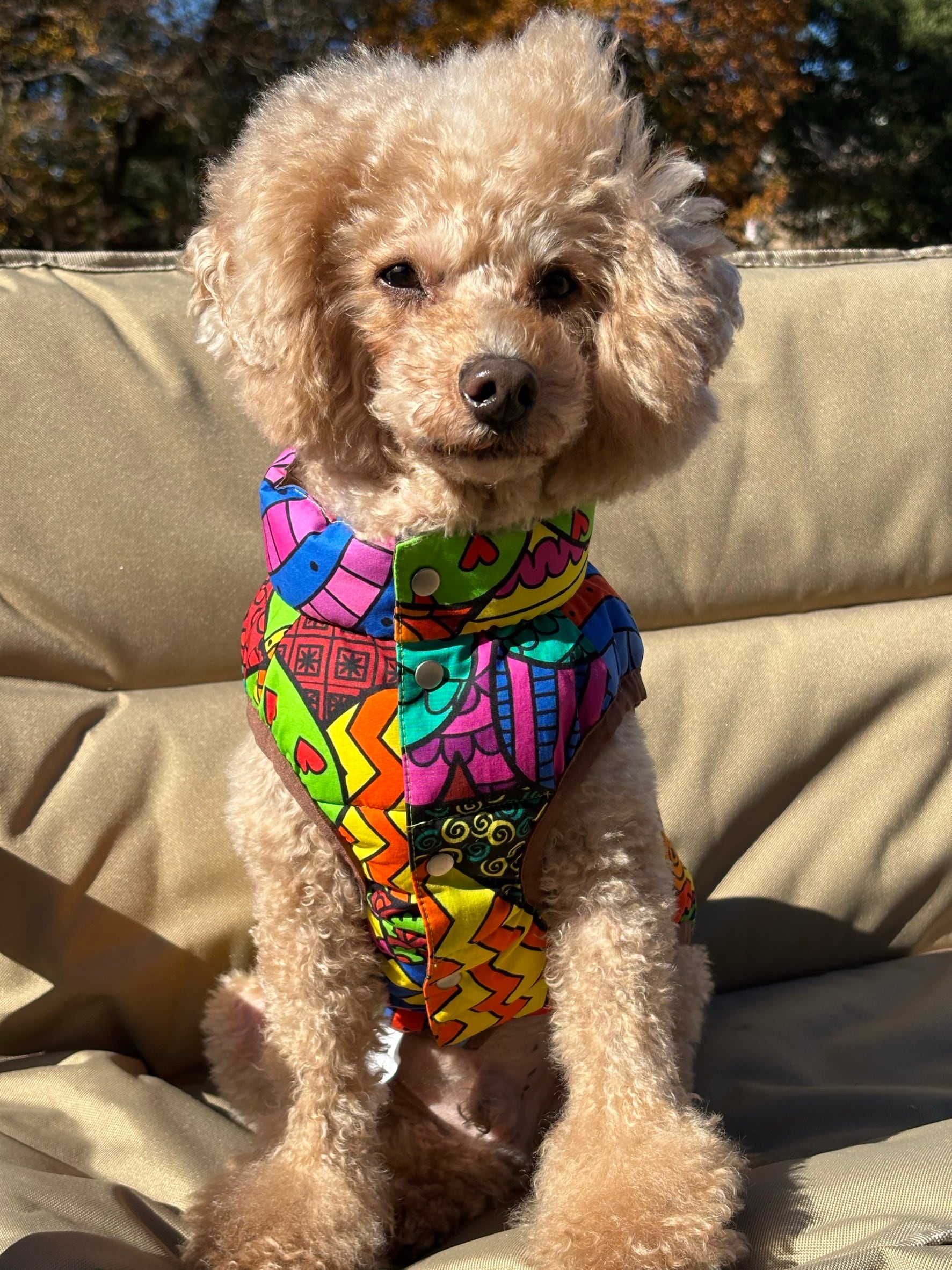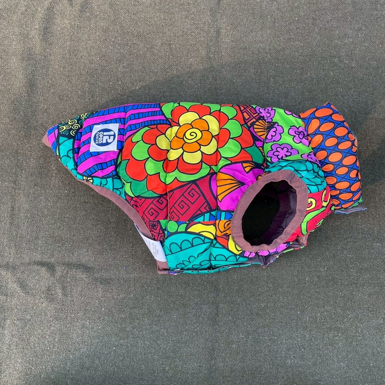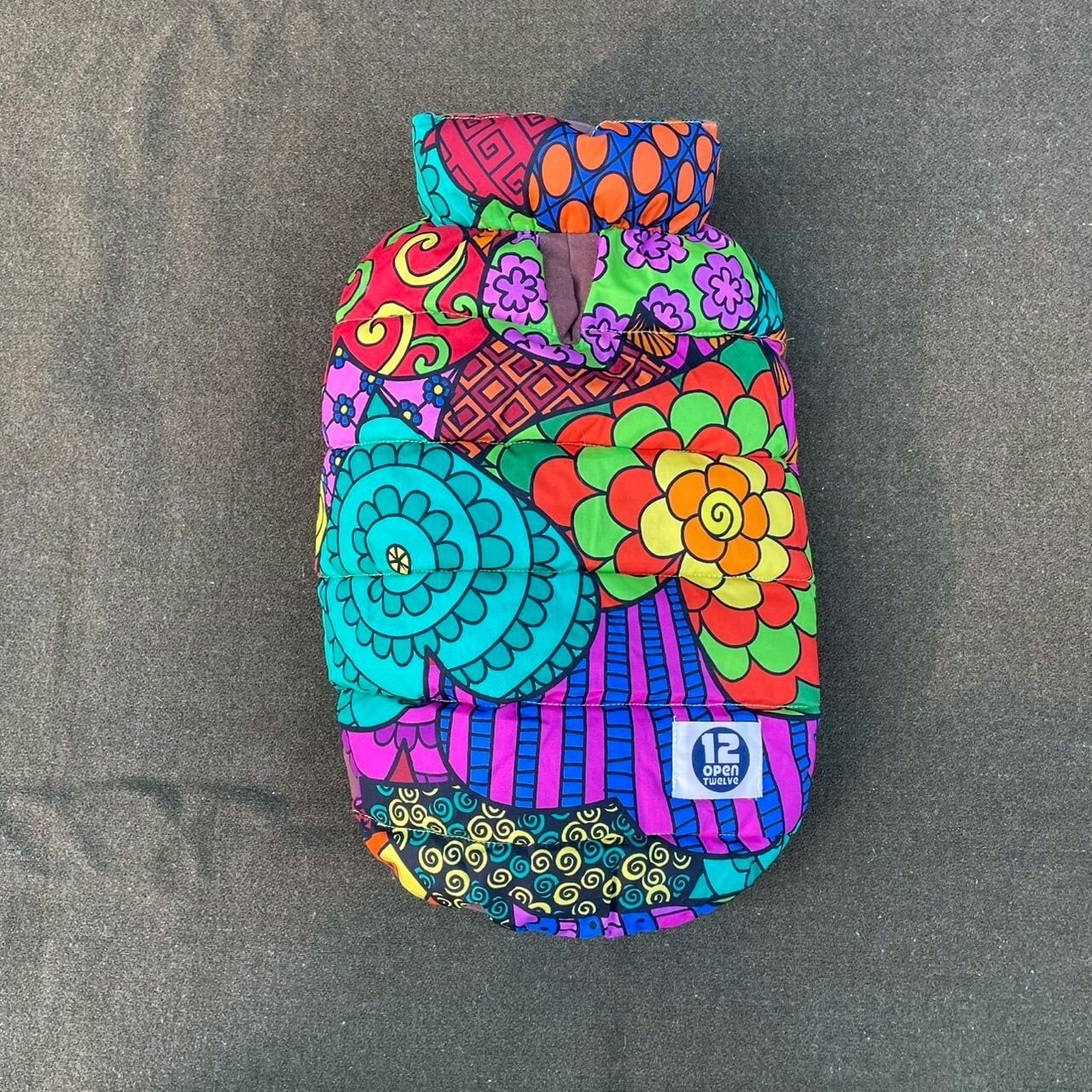 寒さも吹っ飛ぶサイケデリックなPOPな総柄でワンちゃんも飼い主さまも気分UPです♪