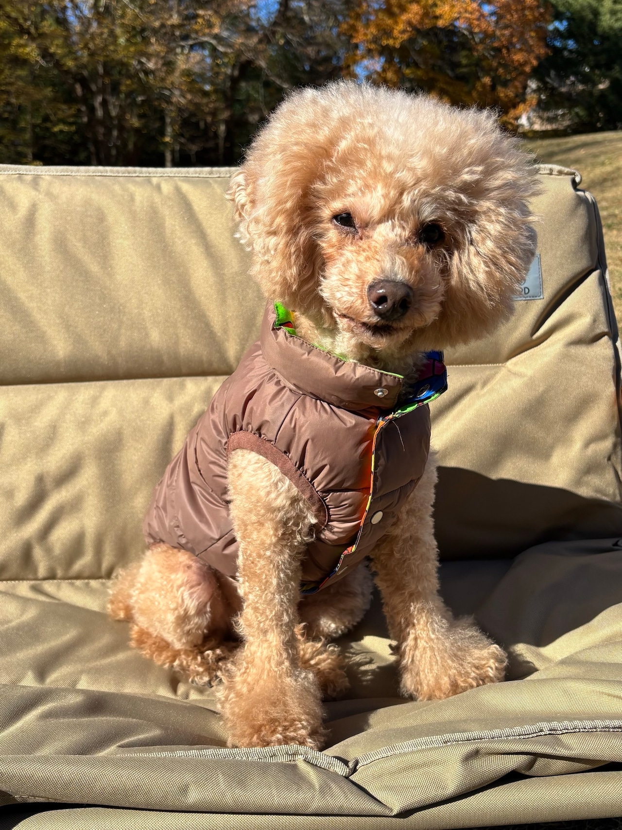 モデル犬:トイプードル7キロ、Lサイズ着用