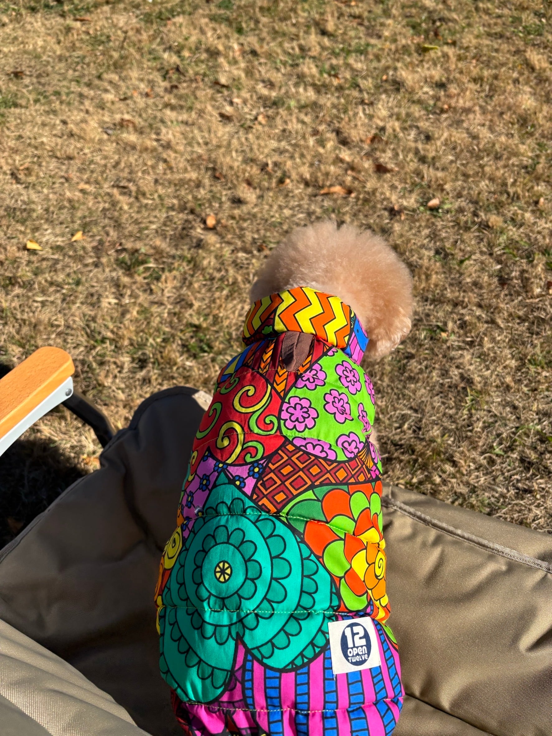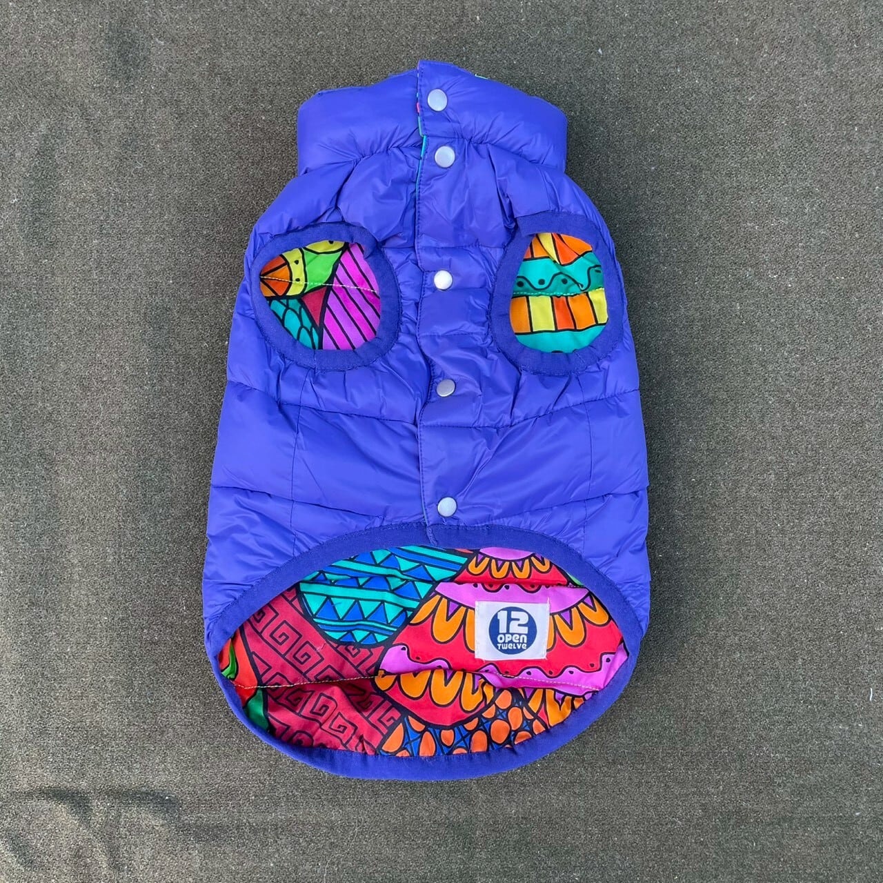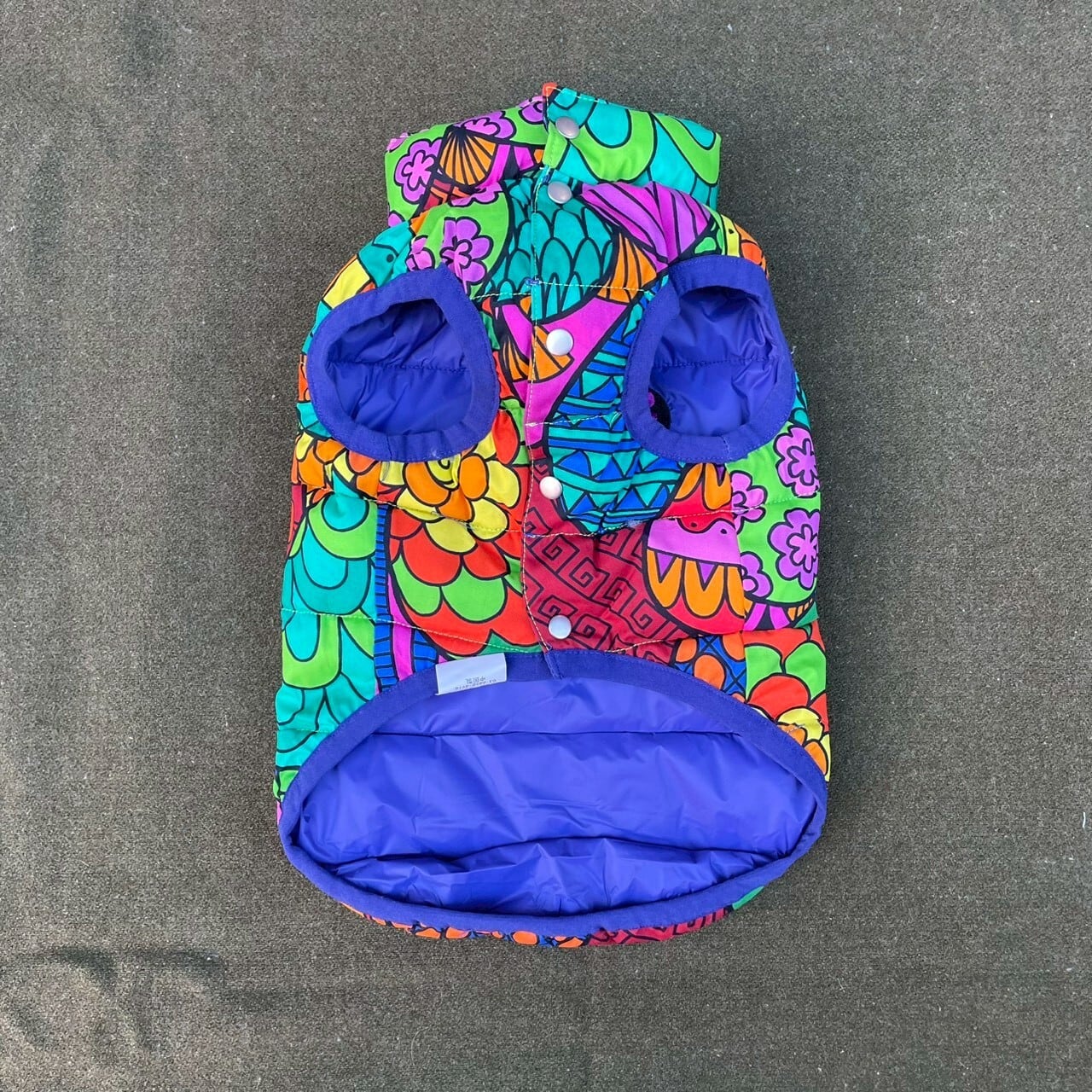 寒さも吹っ飛ぶサイケデリックなPOPな総柄でワンちゃんも飼い主さまも気分UPです♪