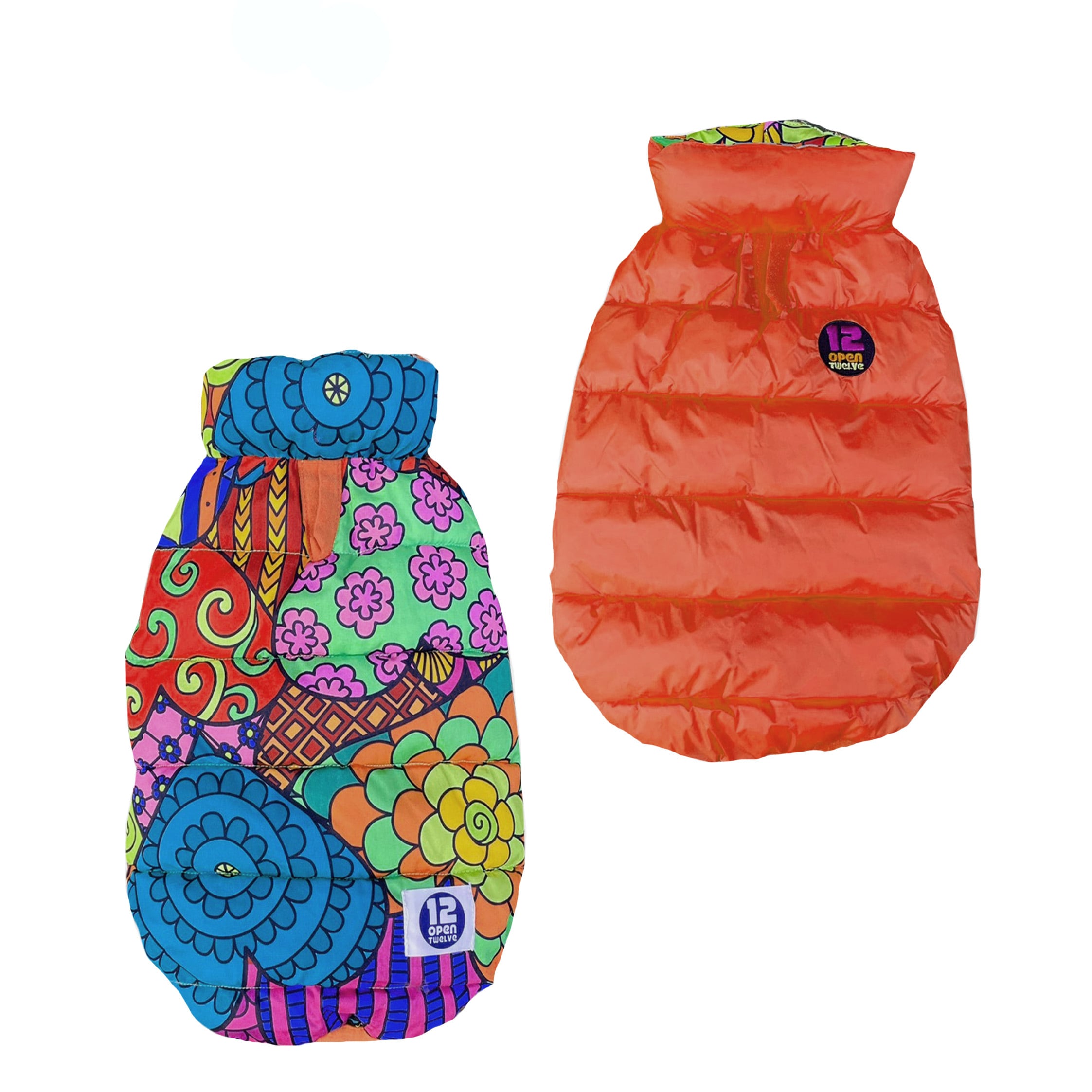 寒さも吹っ飛ぶサイケデリックなPOPな総柄でワンちゃんも飼い主さまも気分UPです♪