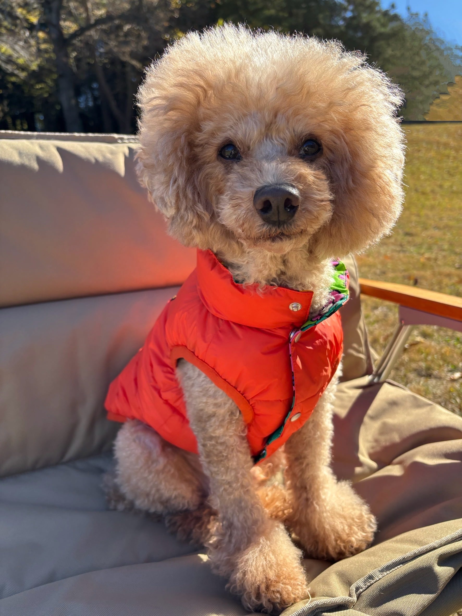 モデル犬:トイプードル7キロ、Lサイズ着用