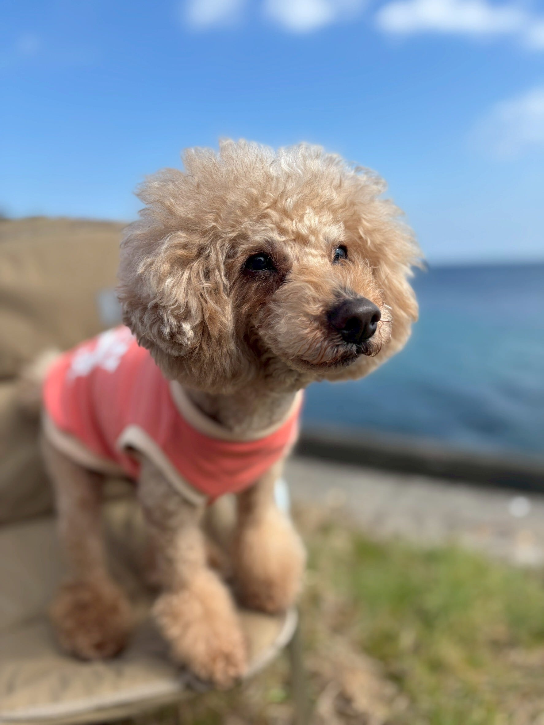 モデル犬:トイプードル7キロ、Lサイズ着用
