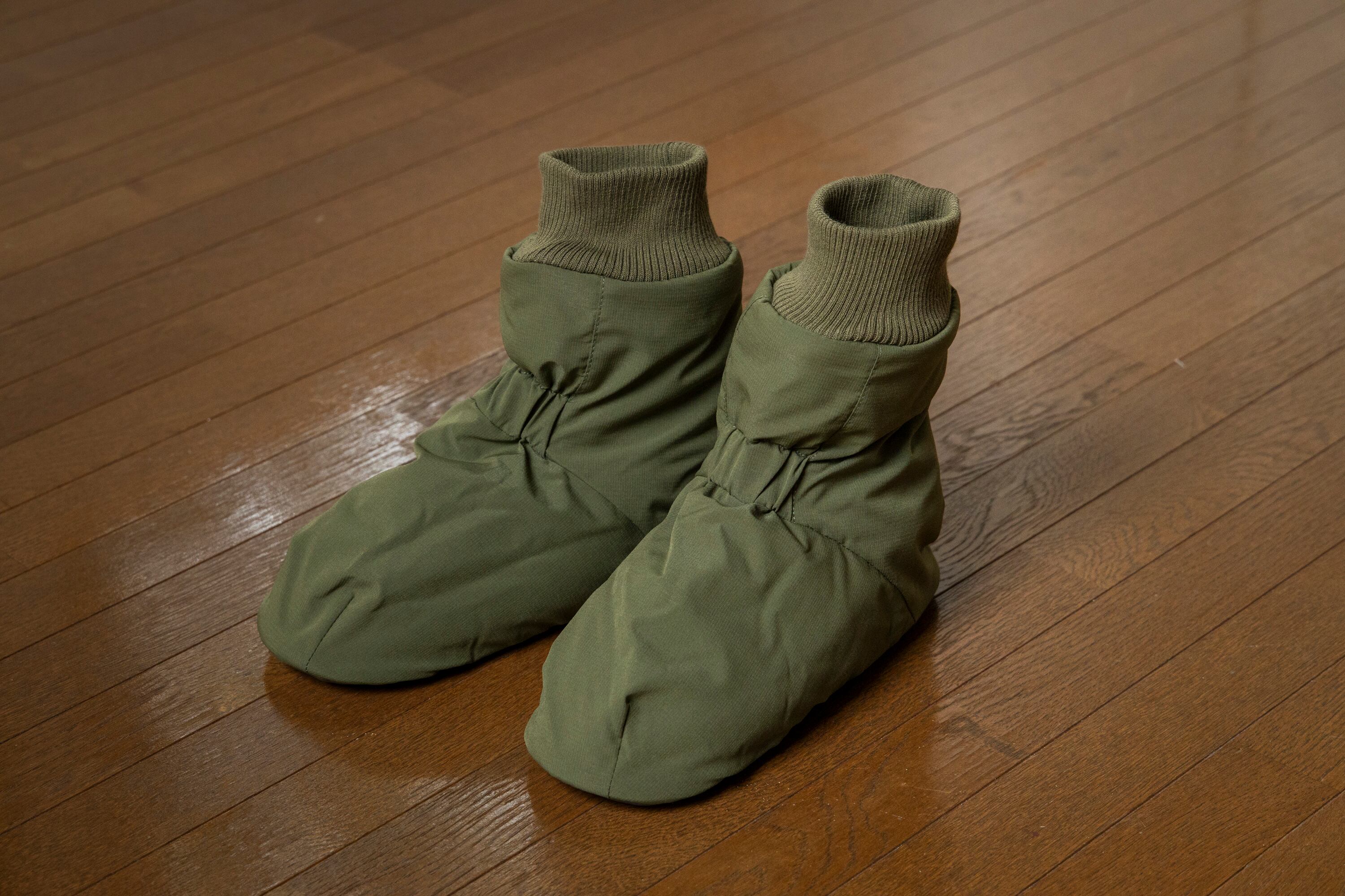 アウトドアではテントの中で足先を暖めるテントシューズが一般的ですが、
