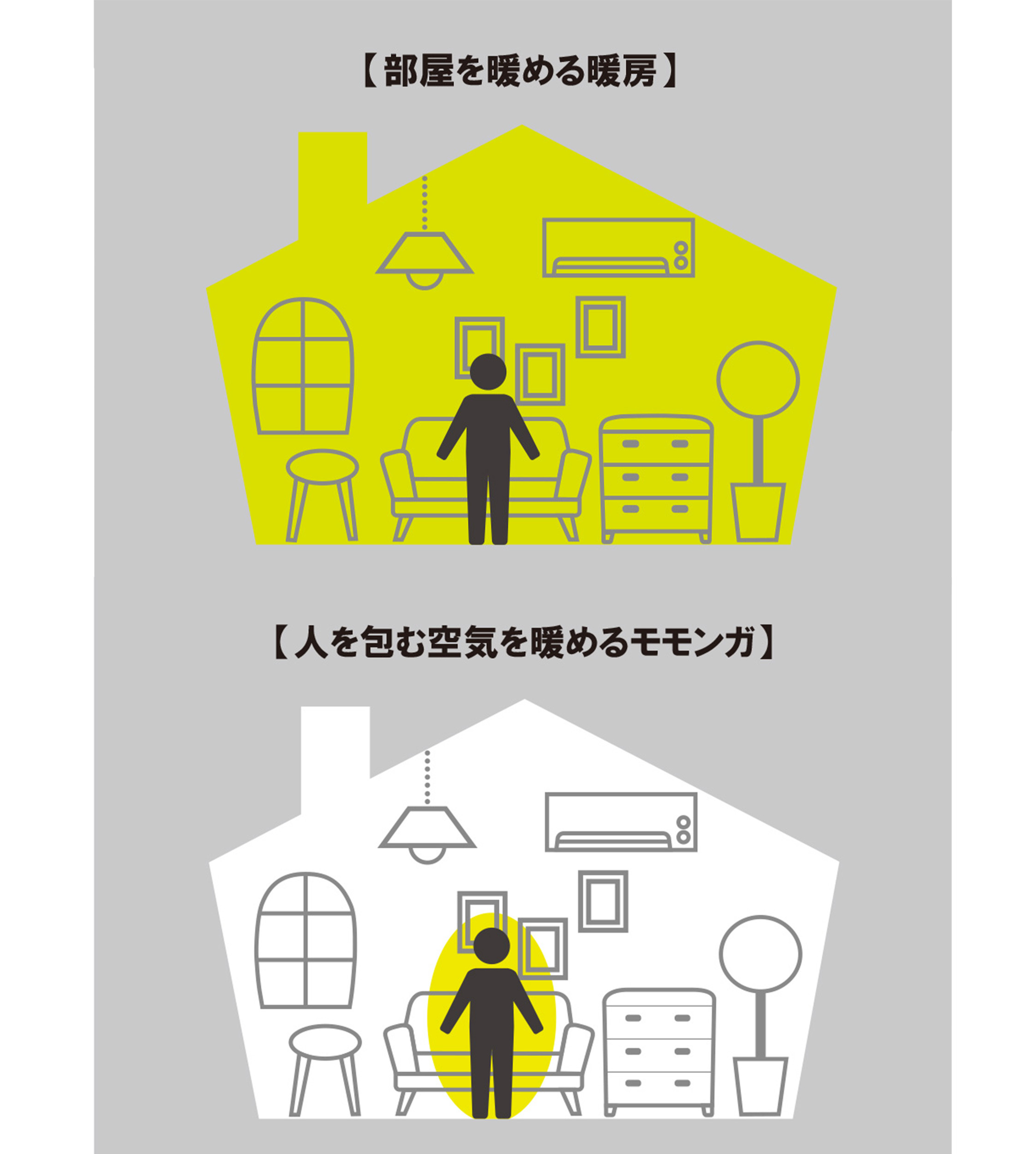 体感温度は人によって違うので同じ室温でも暑い人もいれば寒い人もいます。一人一人が自分を包む空気をコントロールできれば誰もが快適に過ごせます。