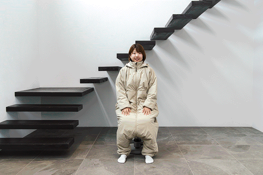 「モモンガ」は寒さを感じた時にどんな服の上にもサッと着れてすぐに暖かさに包まれる、これまでにない画期的な暖房服です。ゆったりとした着心地で、自由に動くことができます。