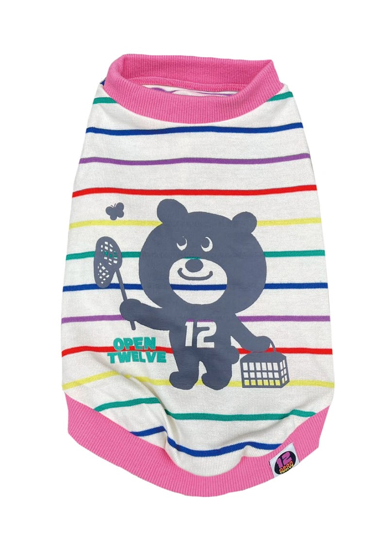 《NEW》マルチボーダー天竺 クマ プリント (ピンク)