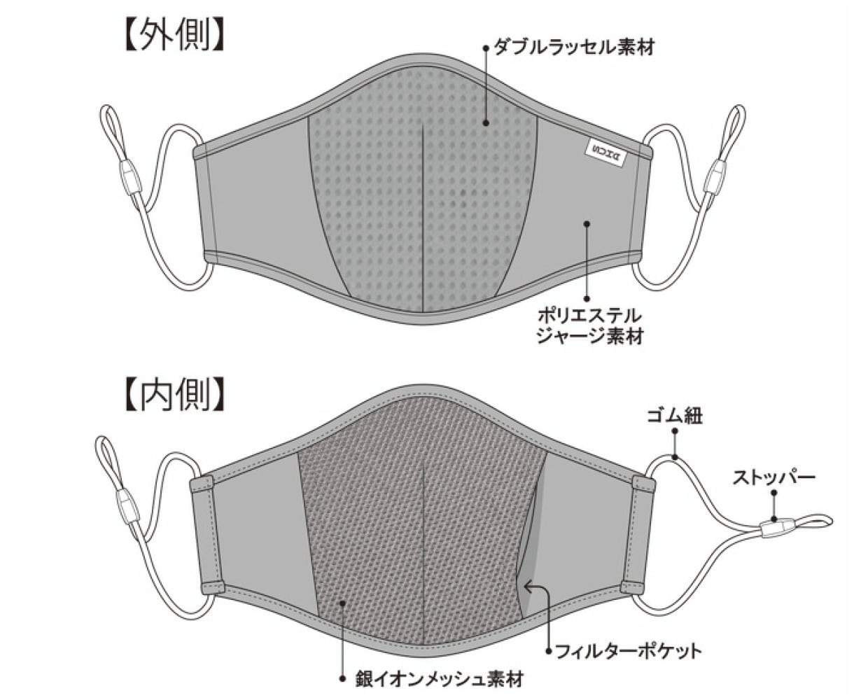 ・特性の違う3つの素材を組み合わせたハイブリッドマスク、制菌・消臭・速乾素材を使用!