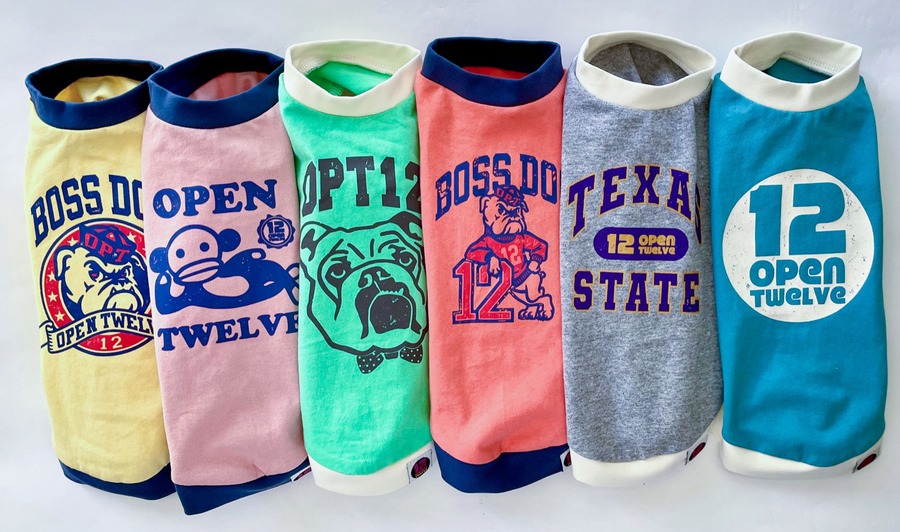 OPEN TWELVE定番キャラクター「BOSS DOG」のカレッジ風プリントです。