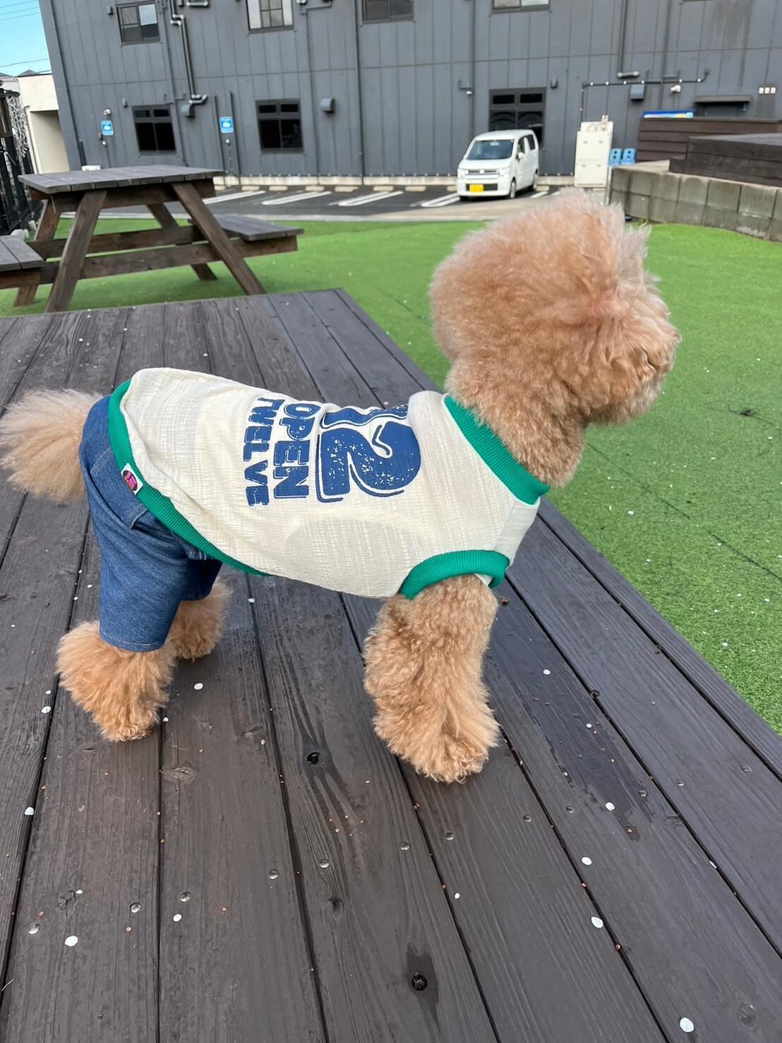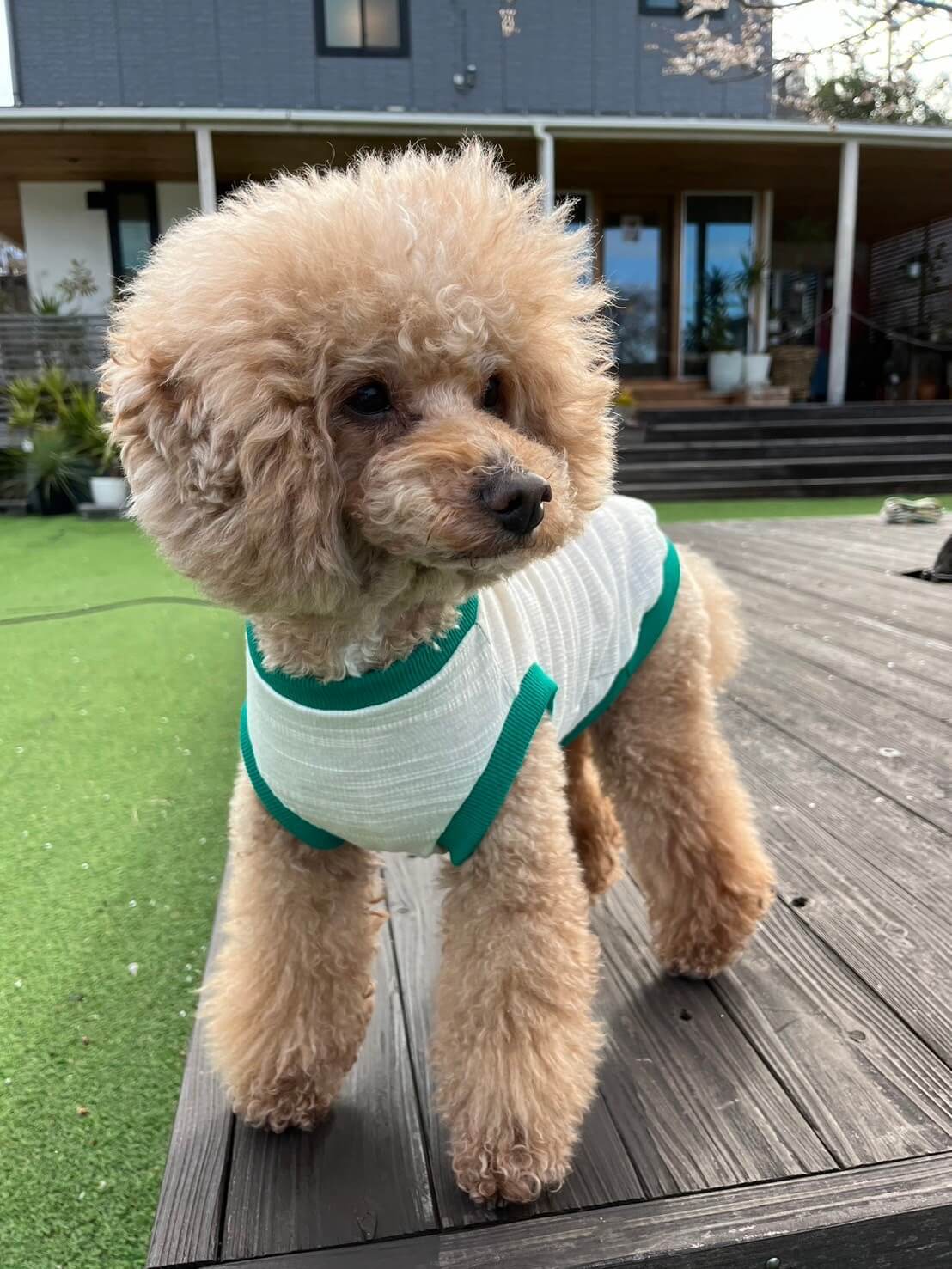 モデル犬:トイプードル7.2キロ、Lサイズ着用