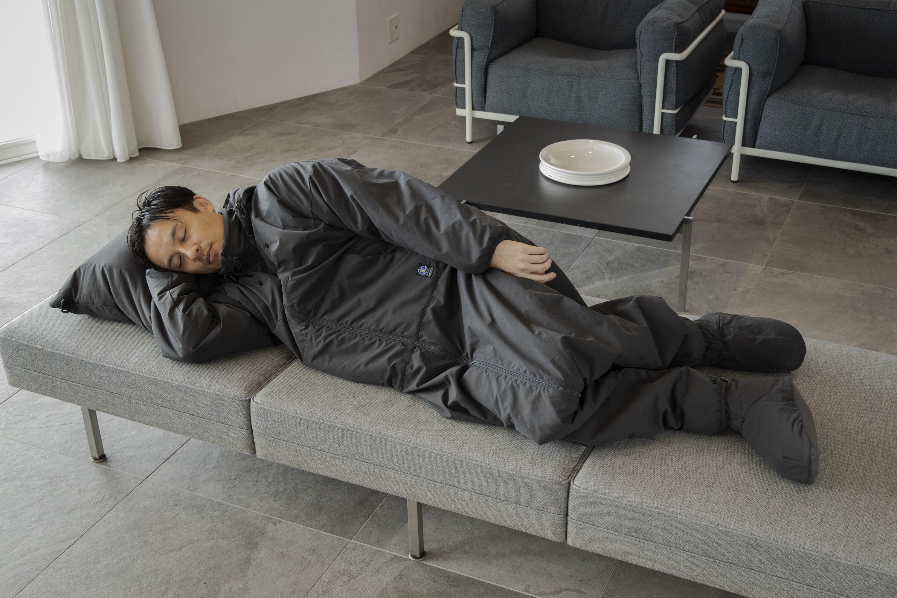 体温で暖めた空気を着ているので軽量・快適で、移動してもずっと暖かさに包まれます。