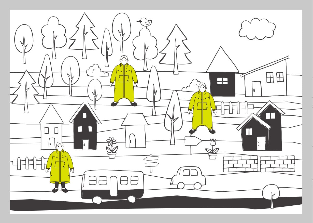 厚着をするのではありません。厚着は脱ぎ着が面倒だったり、身体を圧迫する動きにくさから運動不足にもなりがちです。「モモンガ」はゆったりとした着心地です。暖かい空気を着て、自由に動くことができます。