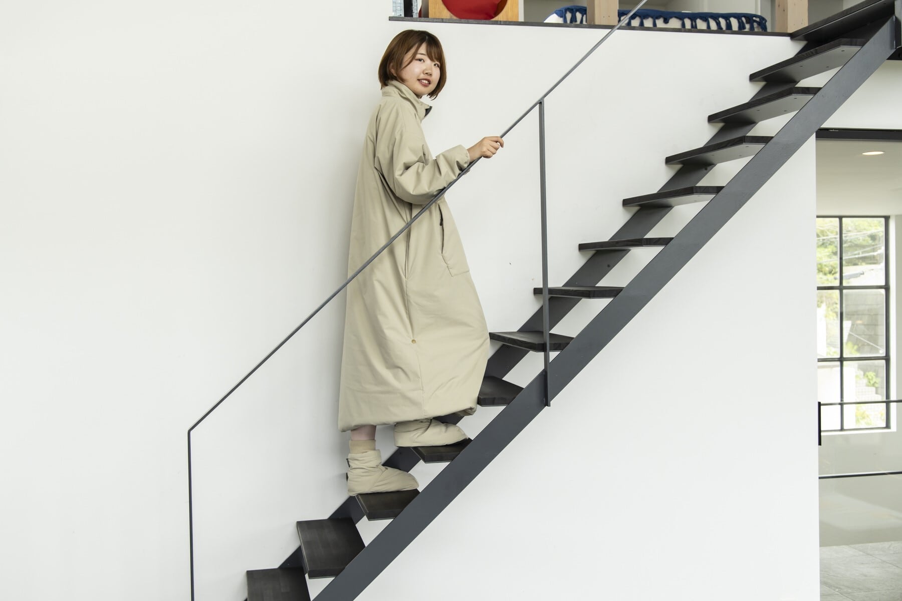 足元もルームソックスシューズで暖かさをキープしています。